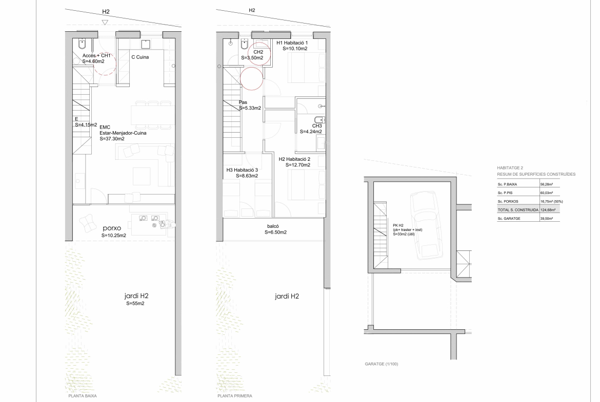 En planta habitaciones, 3 habitaciones dobles, una de ellas suite, y un baño con ducha.