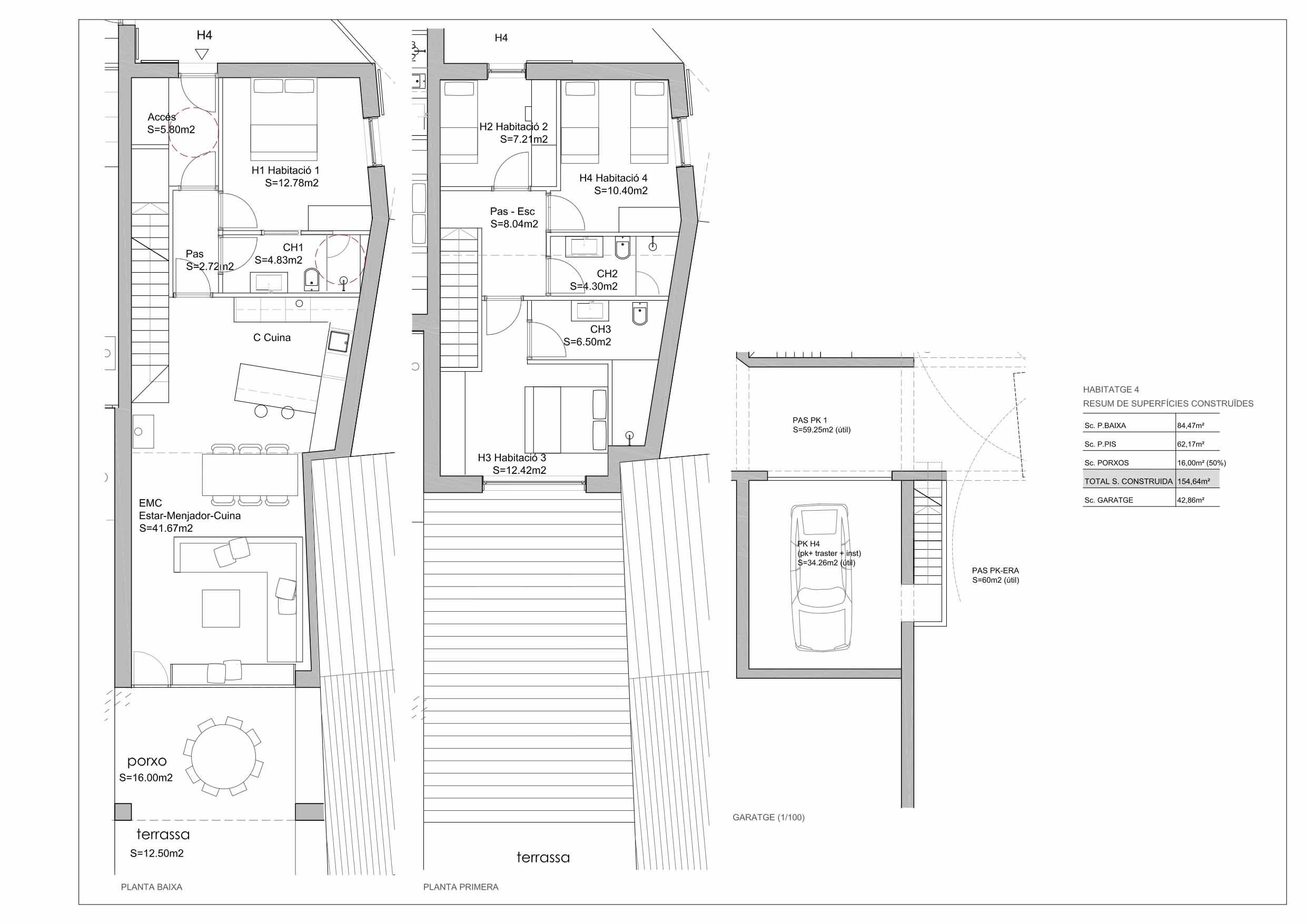 En planta habitaciones, 3 habitaciones dobles, una de ellas suite, y un baño con ducha.