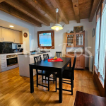 En el interior de la vivienda en la zona de la cocina comedor, hay un espacio con doble altura que enfatiza la volumetría de la vivienda y conecta las dos plantas visualmente.
