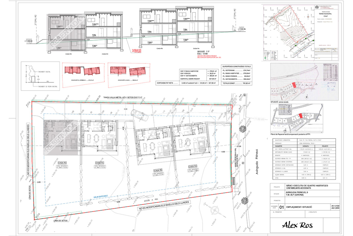 Formará parte de un conjunto de 4 casas, pareadas dos a dos, con jardín privado, y garaje subterráneo para 2 coches, cada una.