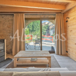 En primera planta encontramos en un espacio diafano el salón, muy luminoso y con ventanales, para contemplar y salir al jardín.