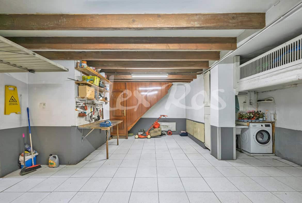 Aparcamiento box cerrado muy completo, por dos coches, a dos niveles, con el piso de arriba, por almacenamiento o espacio polivalente.