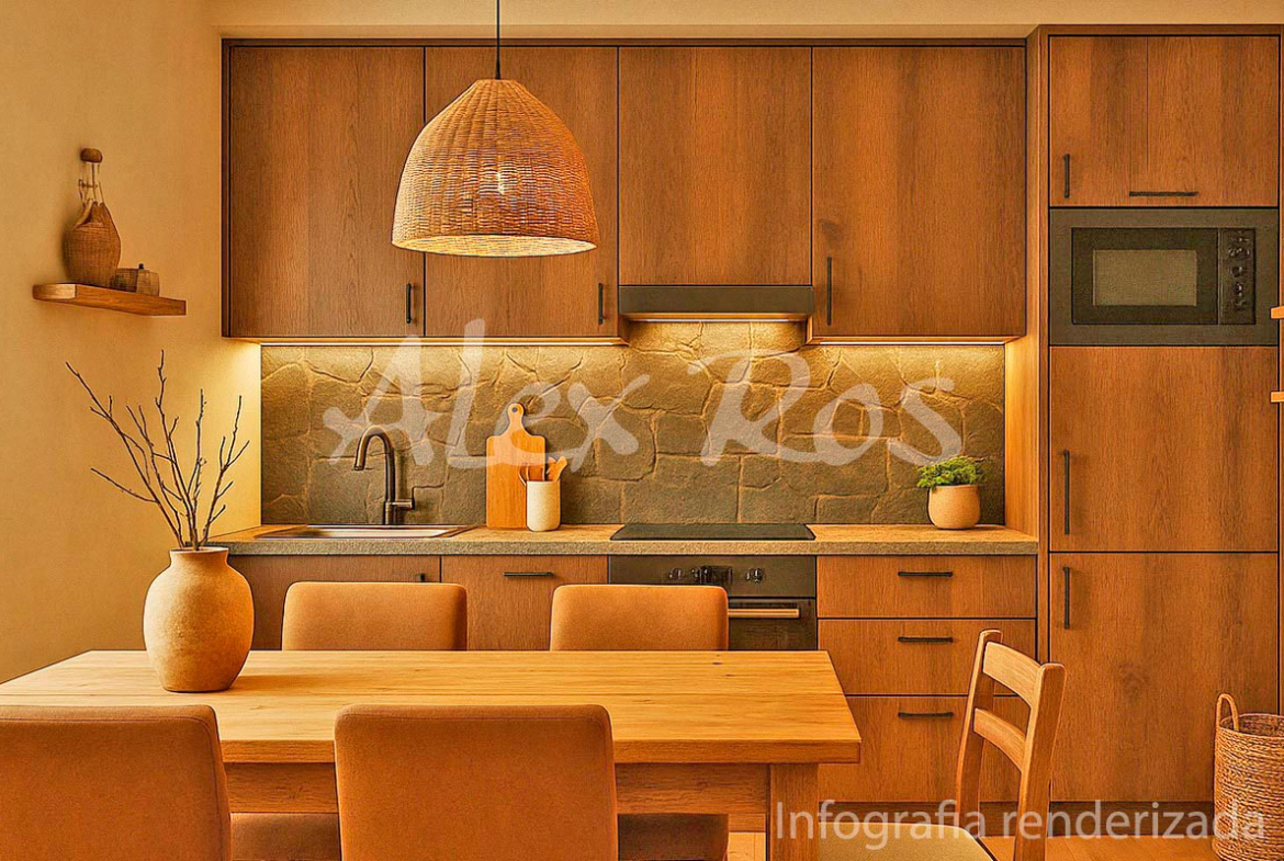 Amplia zona de estar con cocina abierta al espacio.
