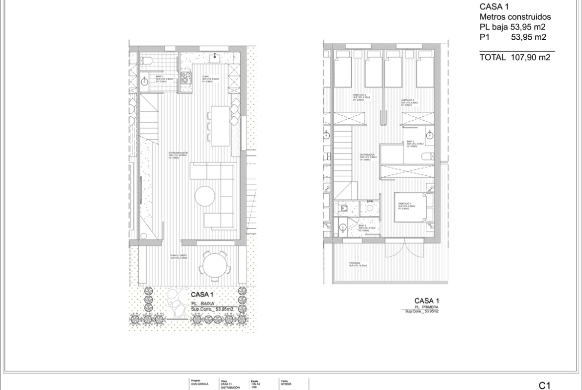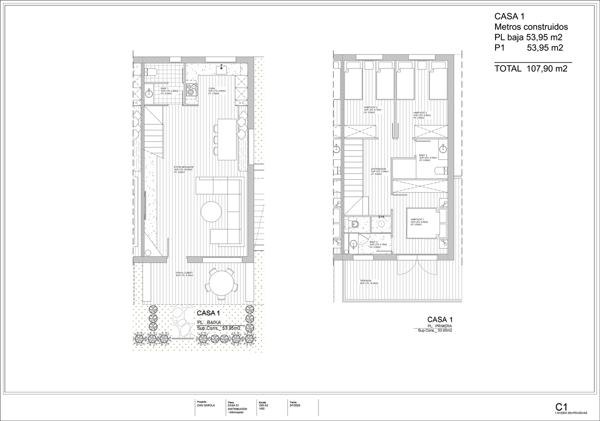 En planta primera: Encontramos 2 habitaciones dobles, 1 habitación suite con salida a terraza y con dos baños completos.