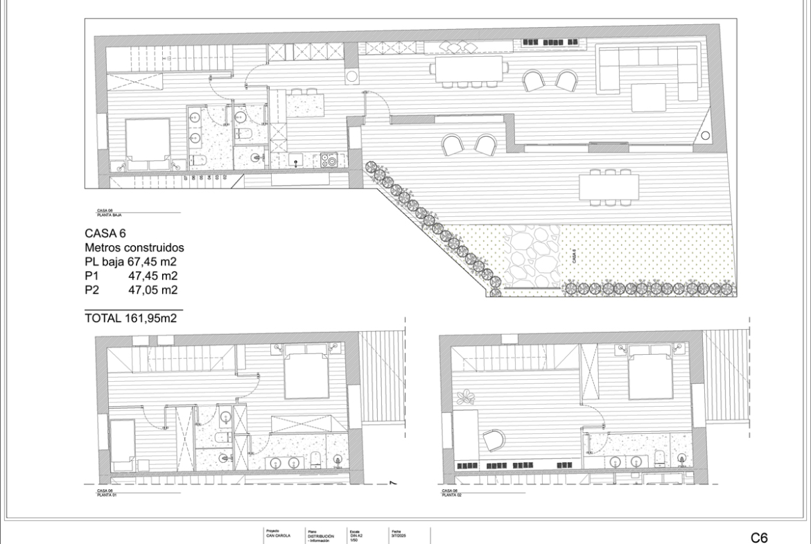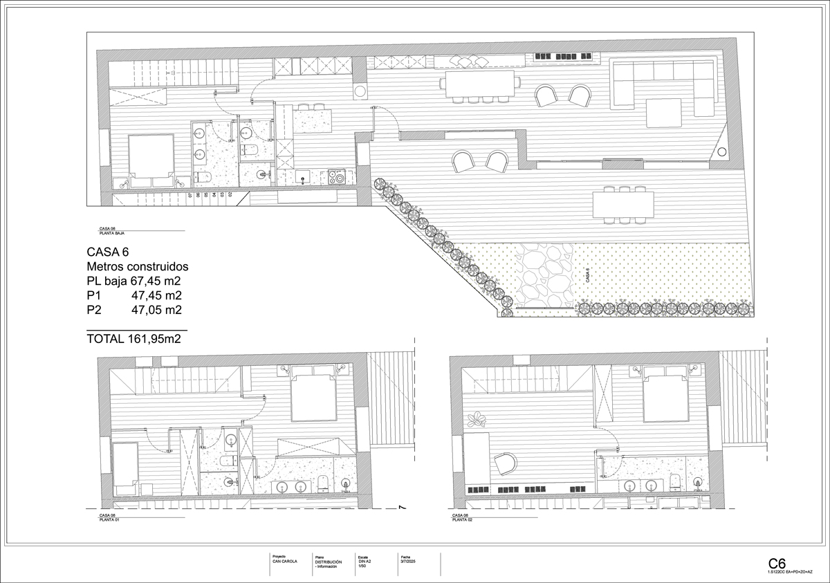 La vivienda se distribuye en planta baja, planta primera y planta segunda: