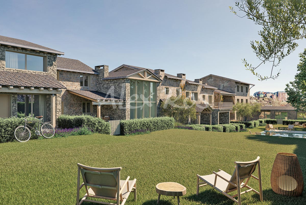 En una comunidad de 8 casas en Sant Martí d’Aravó, en un entorno privilegiado en la Cerdanya, a solo 5 minutos caminando de Puigcerdà y a 4 km de Bolvir.